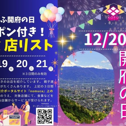 【こうふ開府の日】3日間限定!甲府市内飲食店クーポン掲載中!