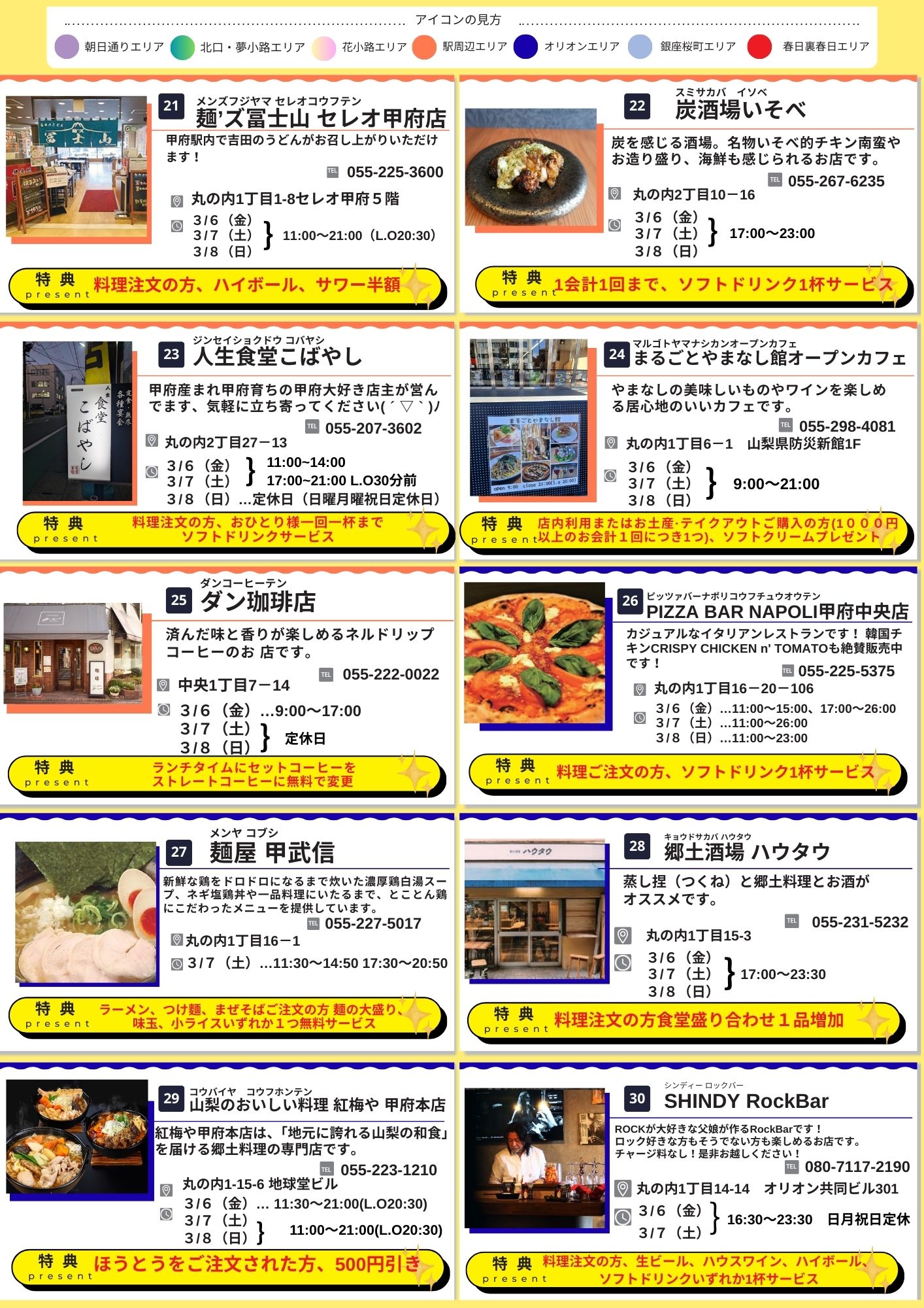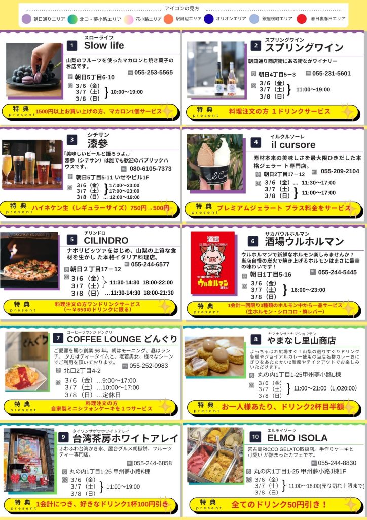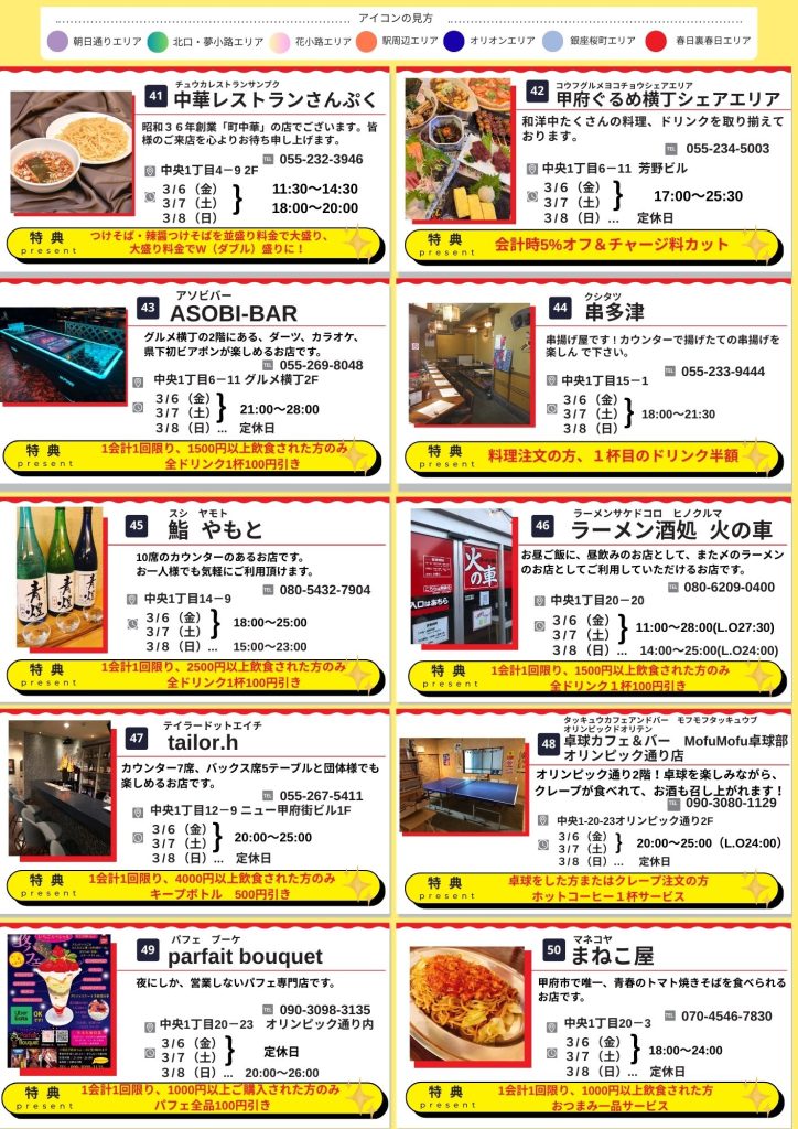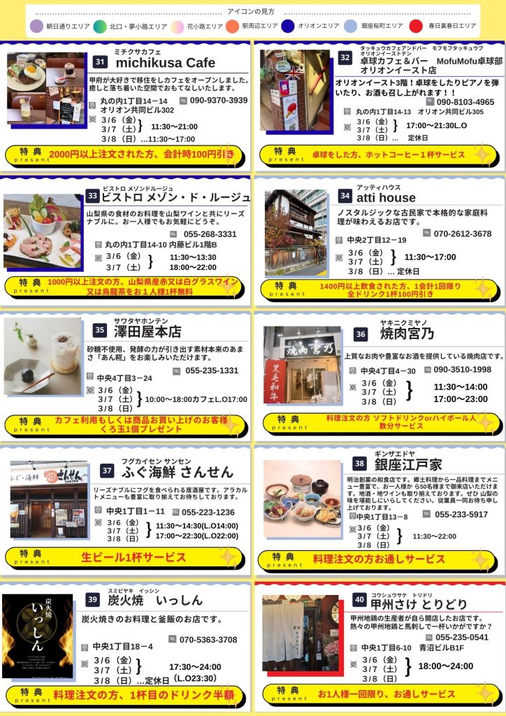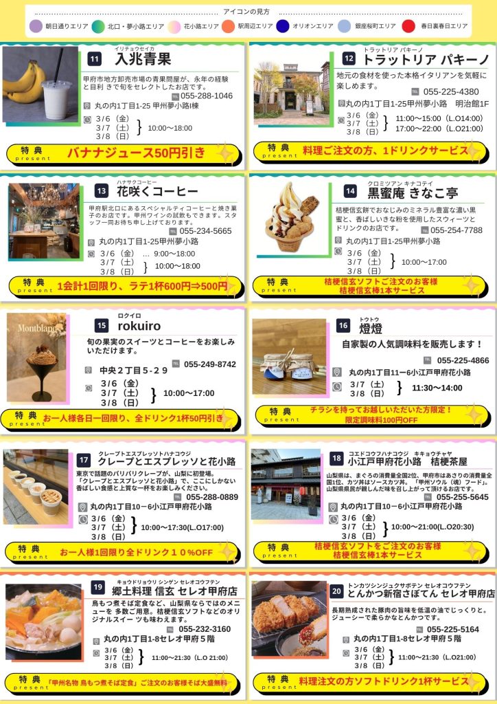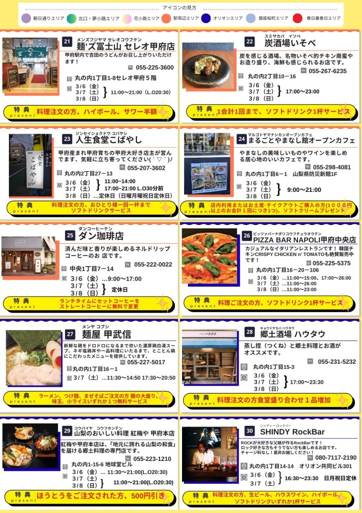 会場の甲府亀屋座・舞鶴城公園の周辺を中心にお得なお店をご紹介しています。